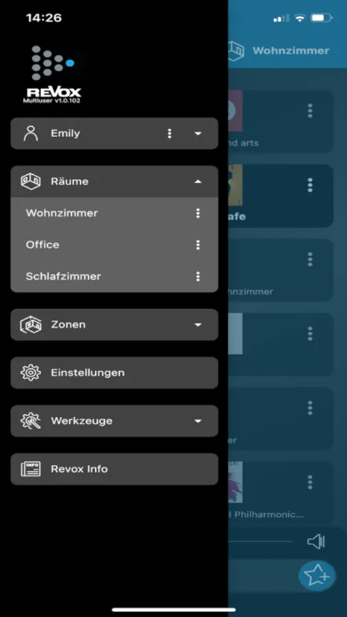 The new Revox Multiuser app allows you to easily control Revox Multiuser products and systems (from software version 3.0) with an iPhone or iPad.