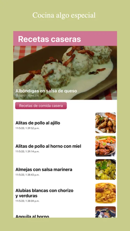 Recetas de cocina caseras es una de las aplicaciones de recetas más grandes del mundo. Cookbook te ayuda a descubrir recetas nuevas y sabrosas de todo el mundo.