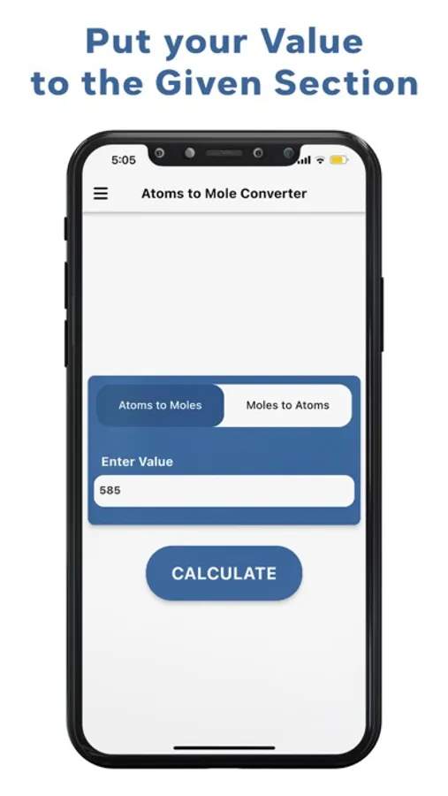 Atoms to Moles Calculator is a simple-to-use tool for students of chemistry. This app gives you an easy way to convert any value of an atom into a mole with auto-processing of the formula, without any type of manual calculation.
