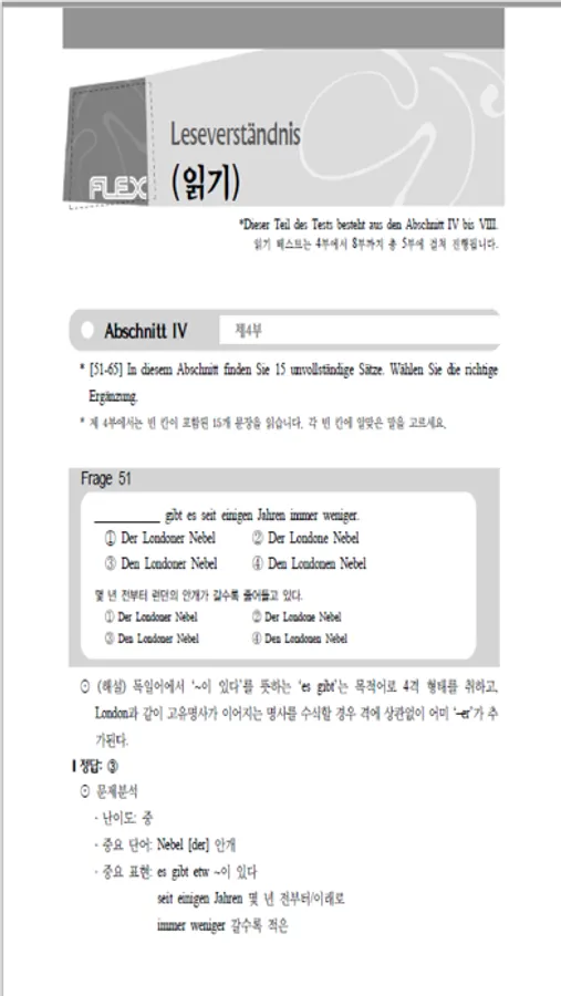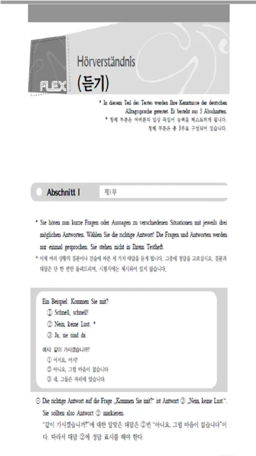 《FLEX 독일어》는 시험에서 고득점을 얻기 위한 지침서로서 FLEX 독일어 시험을 준비하는 분들에게 길잡이가 되도록 시험(듣기, 읽기, 말하기, 쓰기) 안내, 시험 유형 분석과 해설 그리고 실전 문제 등으로 엮었다.