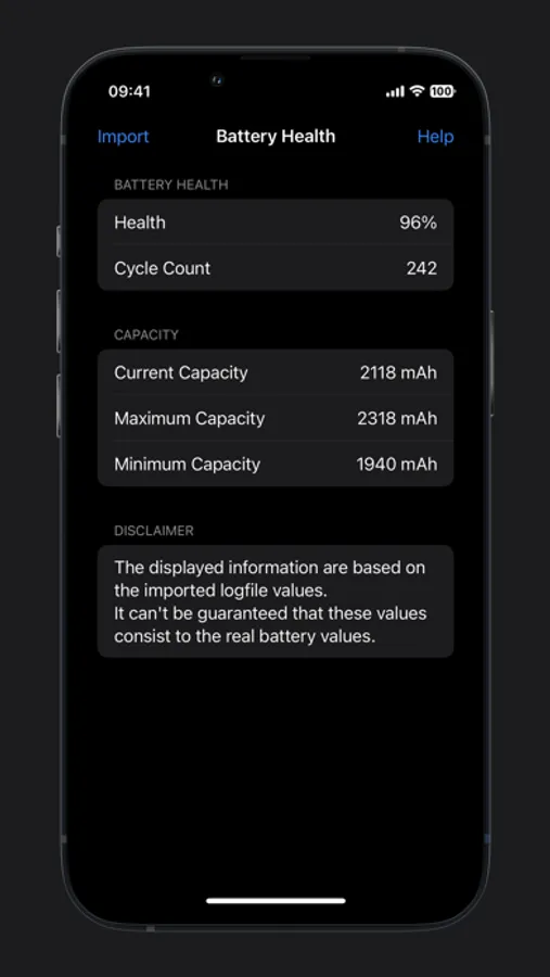 The App takes it information from Apples log files. You need to manual import these files into the app. Following, BAST will provide you advanced information about your Battery health.