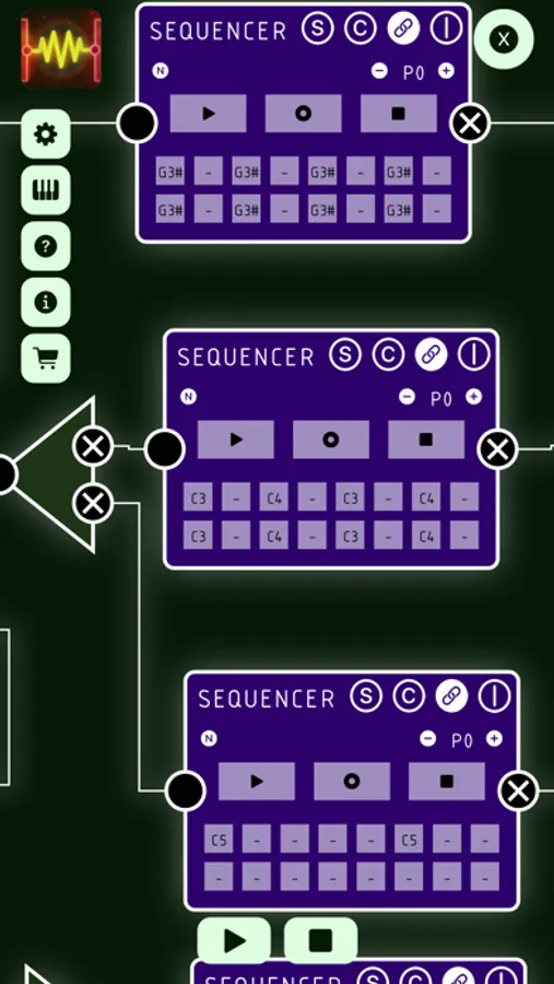 Control your MIDI signals and process them in any combination of ways: Harmonize, Transpose, Arpeggiate, etc... Or use the Sequencer to play any external or virtual synth. Use a MIDI interface to unlock the power of the app to control multiple synths with one keyboard, play one note and generate chords, basslines, etc... Use the delay/looper or filter notes based on velocity or other parameters to send to different synths/effects.