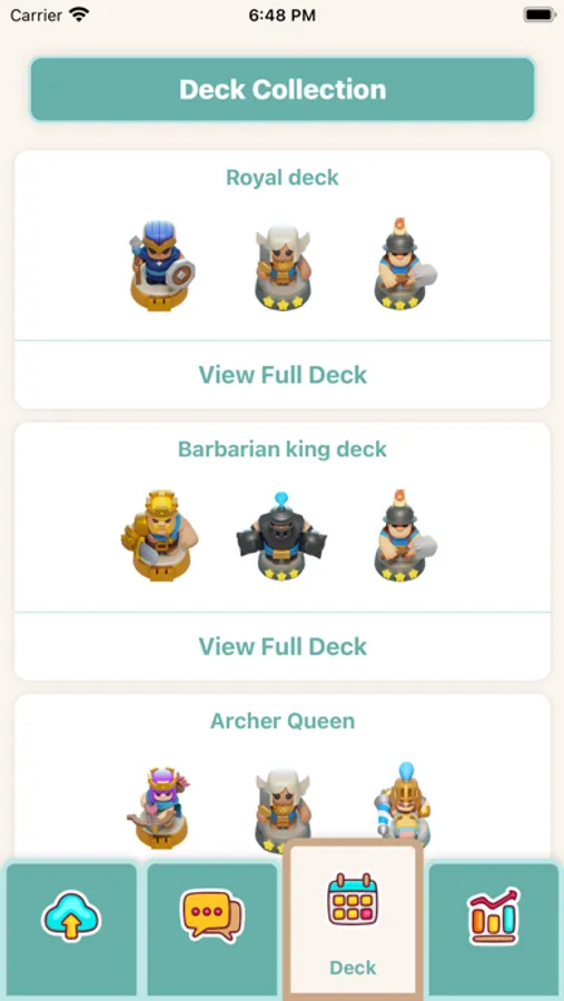 Clash Mini Deck Builder - is a great app that can explain you base Clash Mini mechanics, gameplay, currency(gold coins, games, tokens), minits, champions(heroes), and many other small things which you may not know. Moreover, we have online(multiplayer) in which you can create your own deck and publish it for our community, or explore the top and best decks of our community. Also, we have a special page with many useful tips, pieces of advice, guides, and tricks that will teach you how to win.