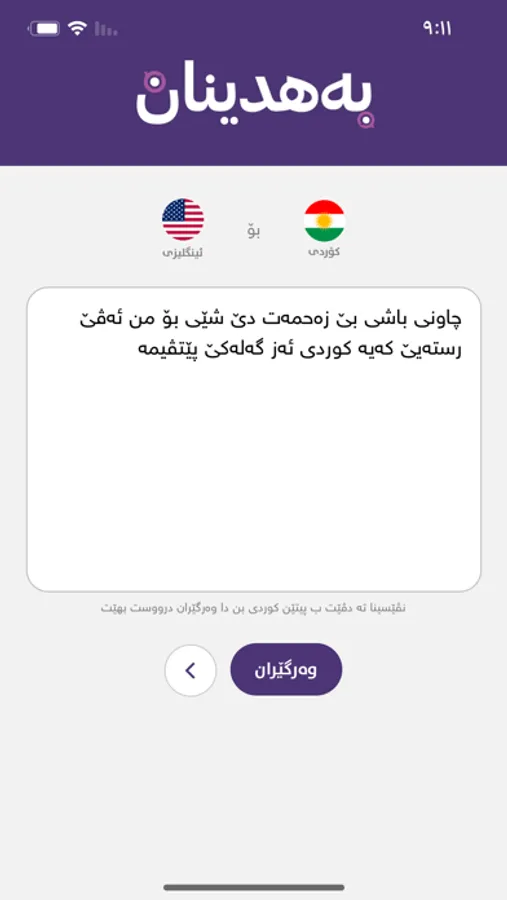 و برێکا تەکنیکێن نووی مە یێ پرۆگرام کری کۆ بهێتە گۆهورین بۆ سەر ئەلفابێتا زمانێ کوردی تایبەت شێوەزارێ بادینی، دزانین کێماسی یێن تێدا هەین ژبەرکۆ دیالێتکا مە بخۆ یا ستاندارد نینە لێ دێ هەمی پێکۆلا کەم کۆ باشترین شێواز ڤێرژنێن نووی بۆ بهنێرم، سۆپاس.