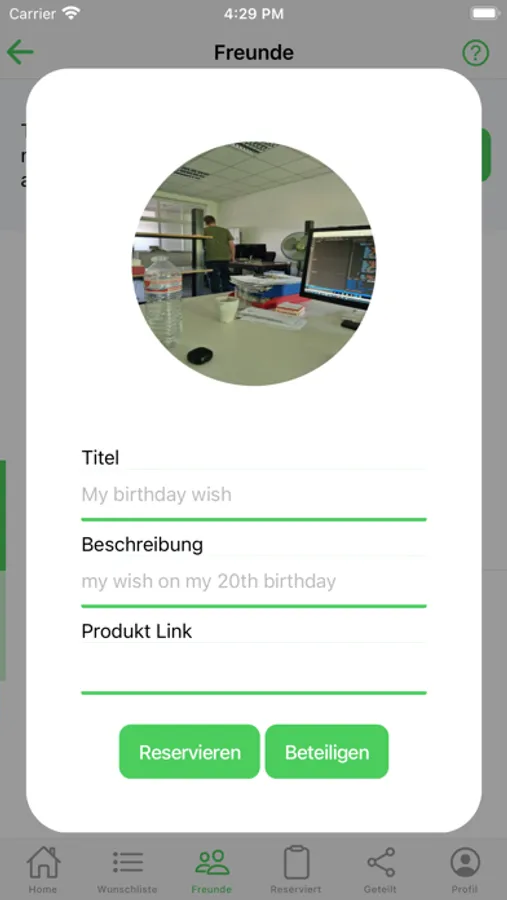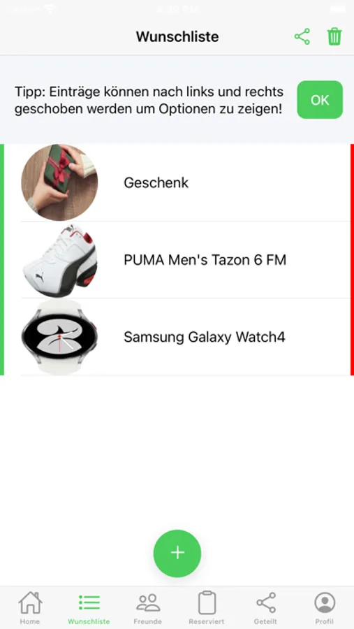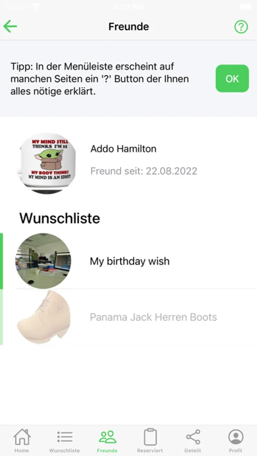Deine Freunde können Wünsche von Dir für sich reservieren. Mit der Reservierung ist der Wunsch für Andere nicht mehr auswählbar.
