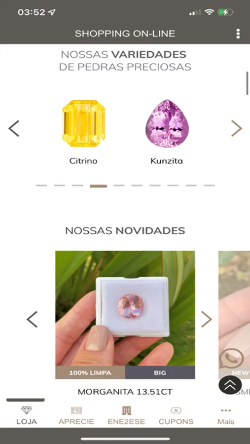 APP E-SHOP on-line de Pedras Preciosas 100% naturais.