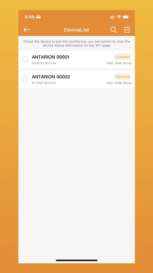 2) L’application détecte et répertorie votre/vos batterie(s) à distance. Retrouvez et connectez/déconnectez-vous à vos batteries en les recherchant dans l’onglet « Liste des périphériques »
