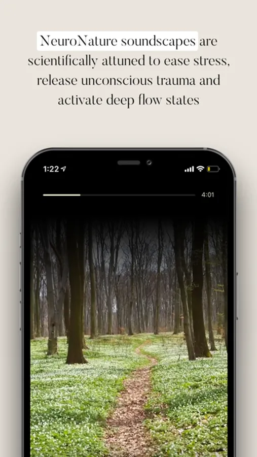 • NeuroNature soundscapes are scientifically curated to ease stress, release unconscious trauma and activate deep flow states