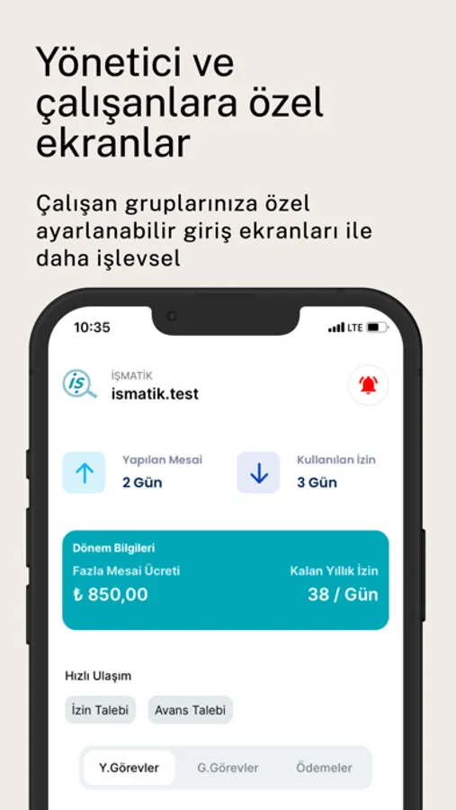 - Yönetici ve çalışanlar için farklı giriş bilgilendirme ekranları