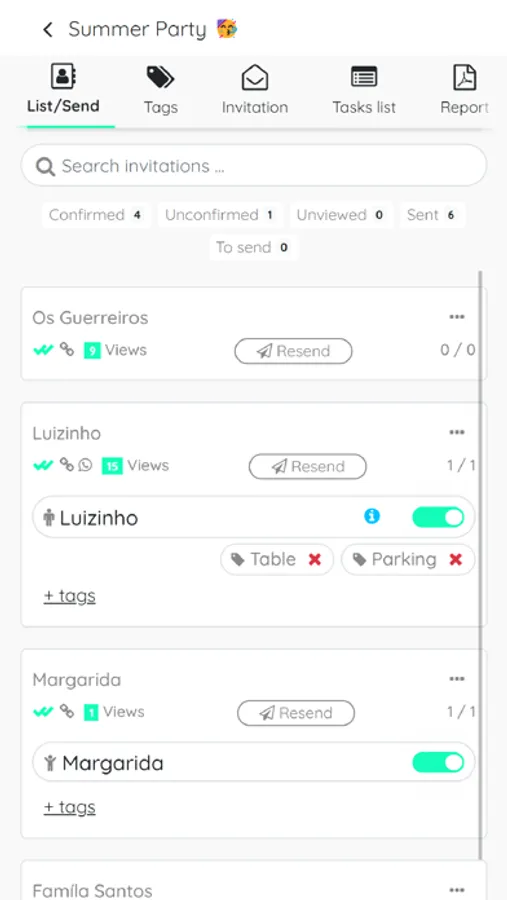 - Tags, can assign a tag to the guests, to identify. For example, if they have allergies, which table they are at.