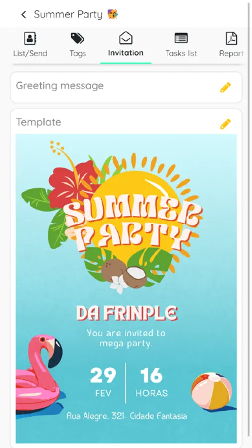 The InvitationApp allows you to add a list of guests, be it individuals, a group or a family. You can create and send digital invitations, choose a template and edit it as well as add your digital invitation or make a video. Manage tasks as well as RSVP monitoring.