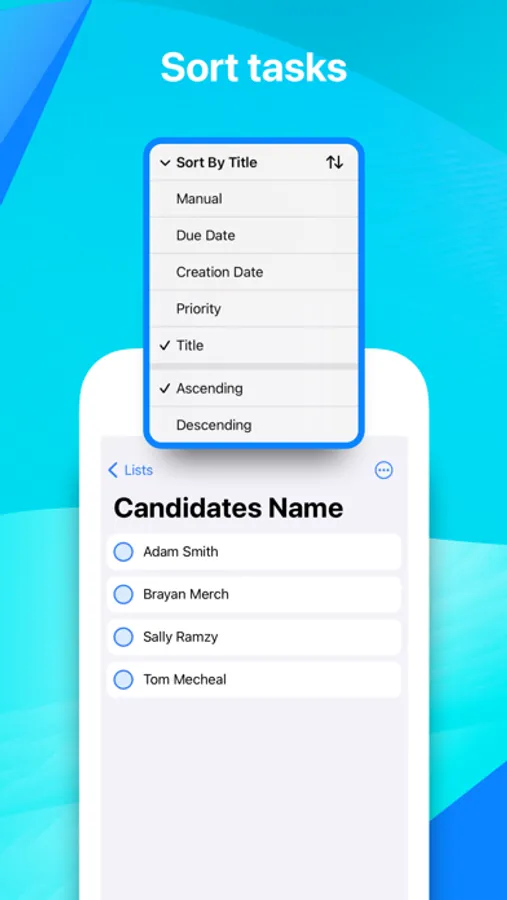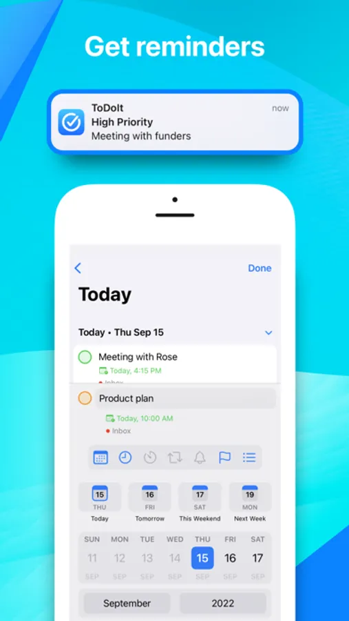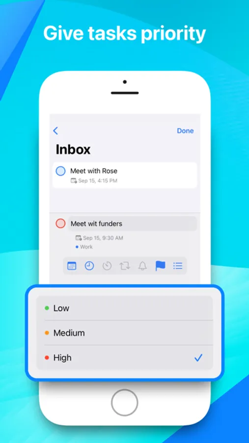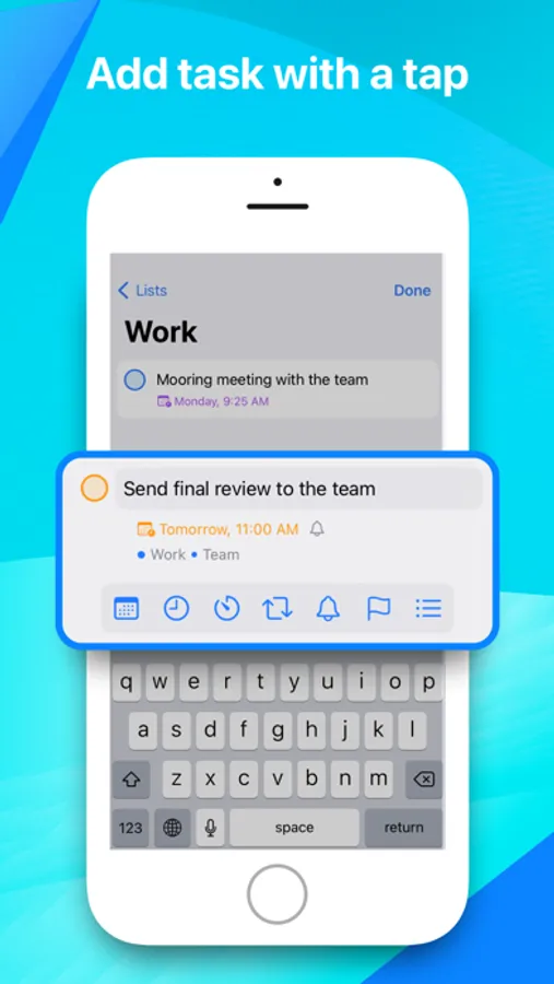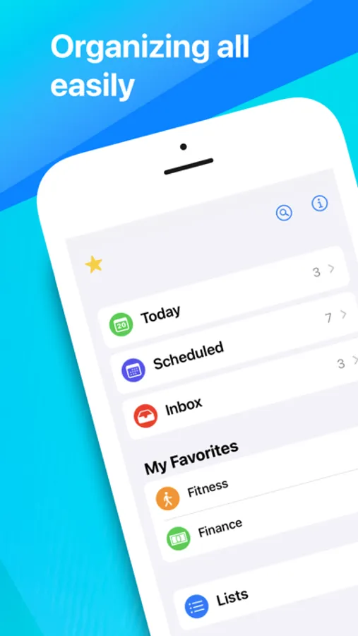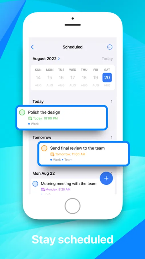 - Stay on track with a list of today's tasks and a scheduled's tasks ordered by date.