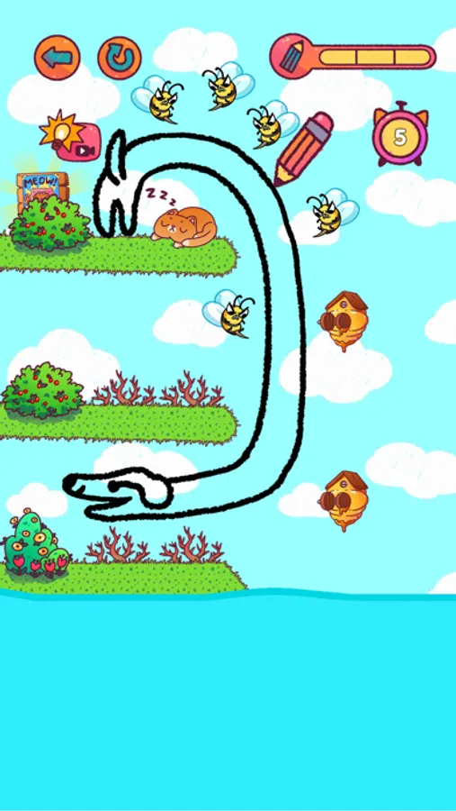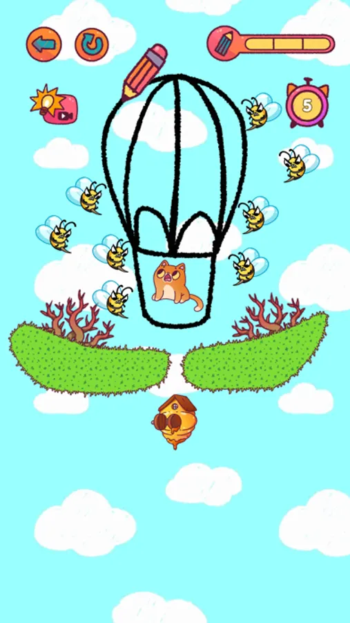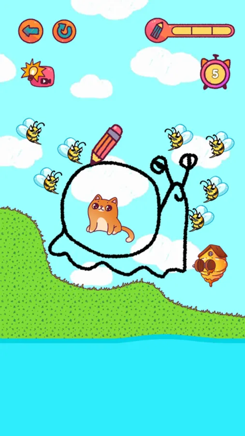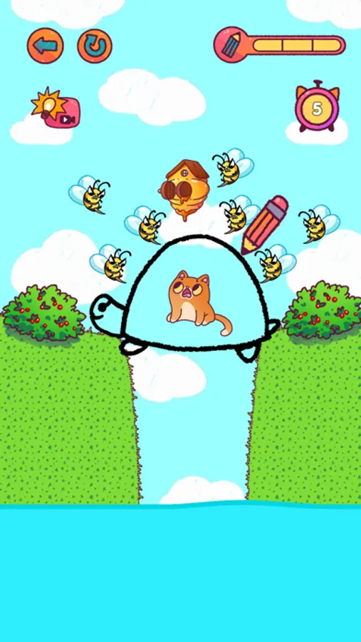 Save Simbachka is a casual puzzle game. You draw lines with your finger to create a wall that protects Simba from bees and other dangers. You need to protect Simba with a painted wall from all dangers for a few seconds, hold out and you will win the game. Use your wits to save Simba the cat.