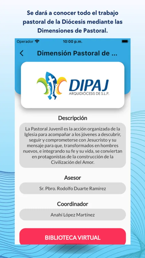 Esta es una App para los feligreses y habitantes en general de San Luis Potosí, la cual ofrece un espacio de encuentro y difusión de las diversas actividades y eventos realizados en la Diócesis.