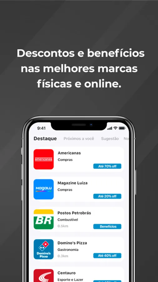 A DSTech te dá descontos em compras online e em lojas físicas de todo o Brasil. Com o app do nosso Clube de Vantagens, você acessa as principais marcas do país e utiliza o desconto na hora de pagar, de maneira rápida e sem custo.