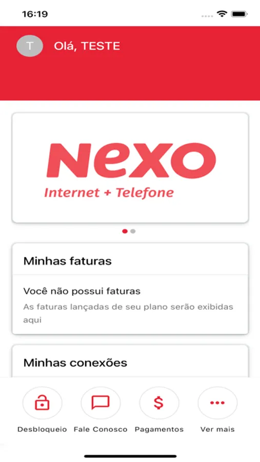 Aplicativo para acessar o serviço de atendimento ao consumidor da NEXO.