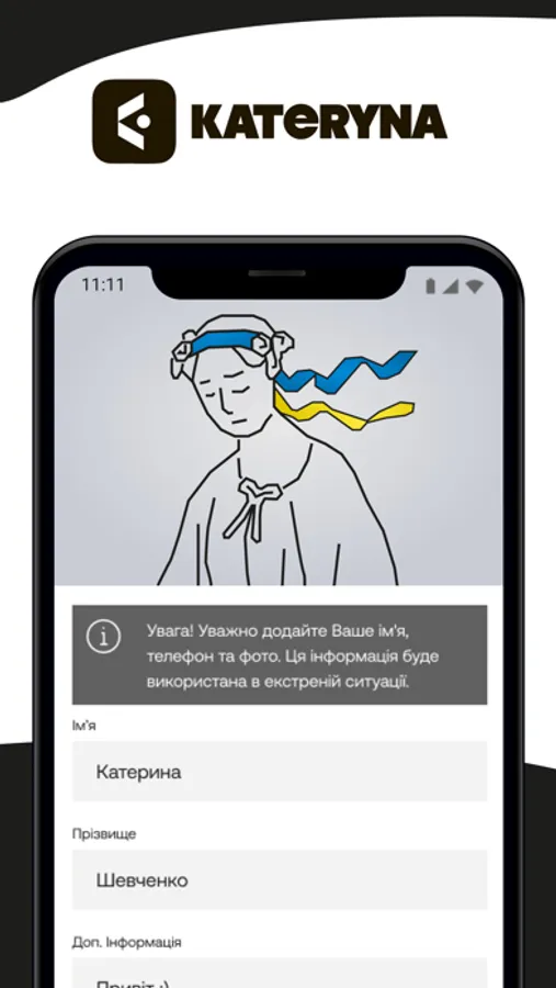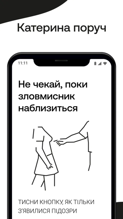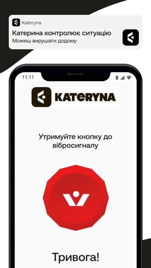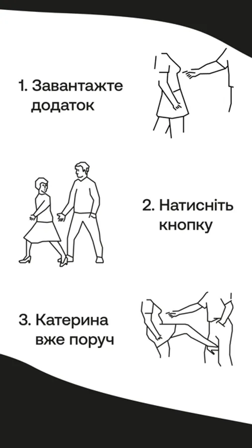 Якщо почуваєшся в небезпеці або не знаєш, як вчинити, просто тисни на кнопку і клич KATERYNA.