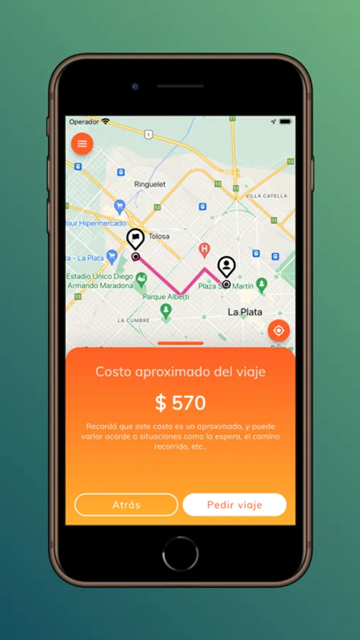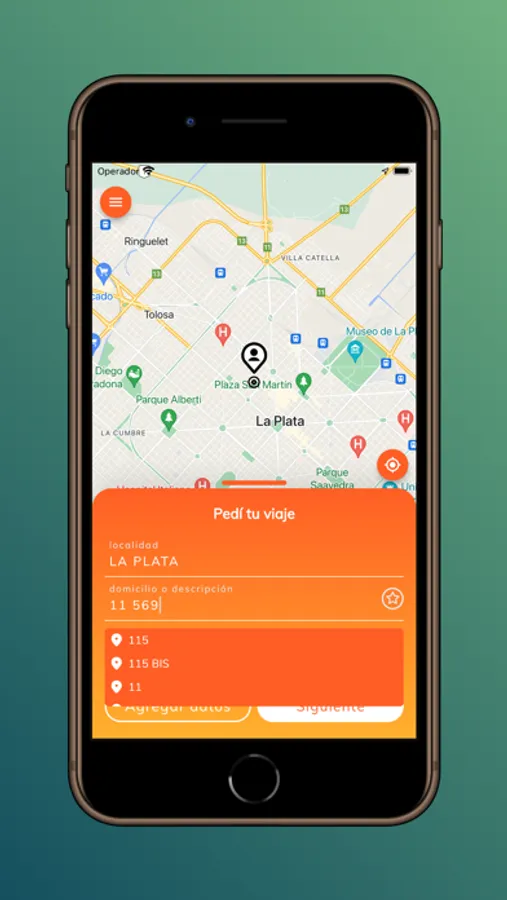 - Solicitud de viajes desde una ubicación elegida sobre un mapa o carga manual de calles.