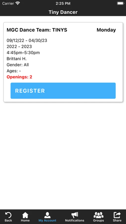 The MGC Dance Team app allows you to manage your account with ease, register for classes, make payments, and special events. You'll also receive important notifications about class changes, closings, registration openings, special announcements, and upcoming events.