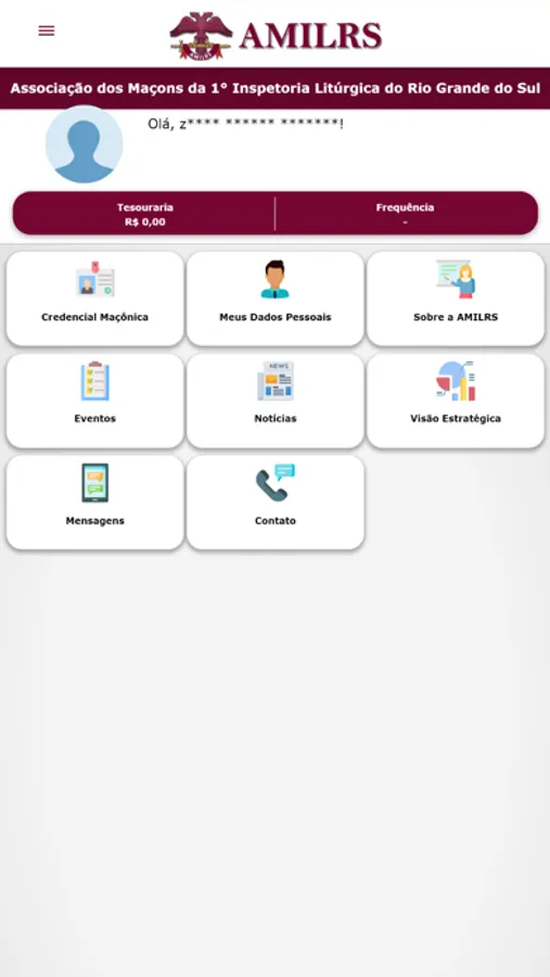 - Através do botão "Credencial Maçônica" o usuário terá acesso a carteira de membro.