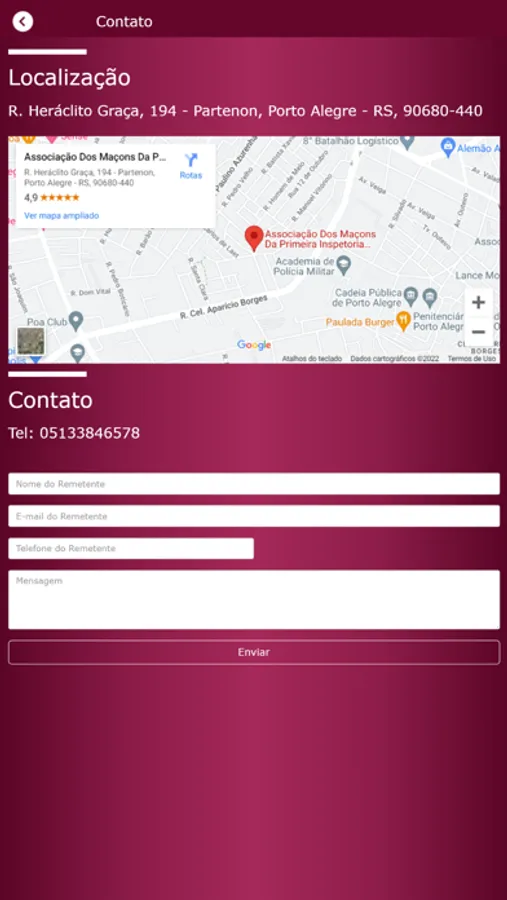 - Através do botão "Contato" o usuário terá acesso a informações de contato do AMILRS.