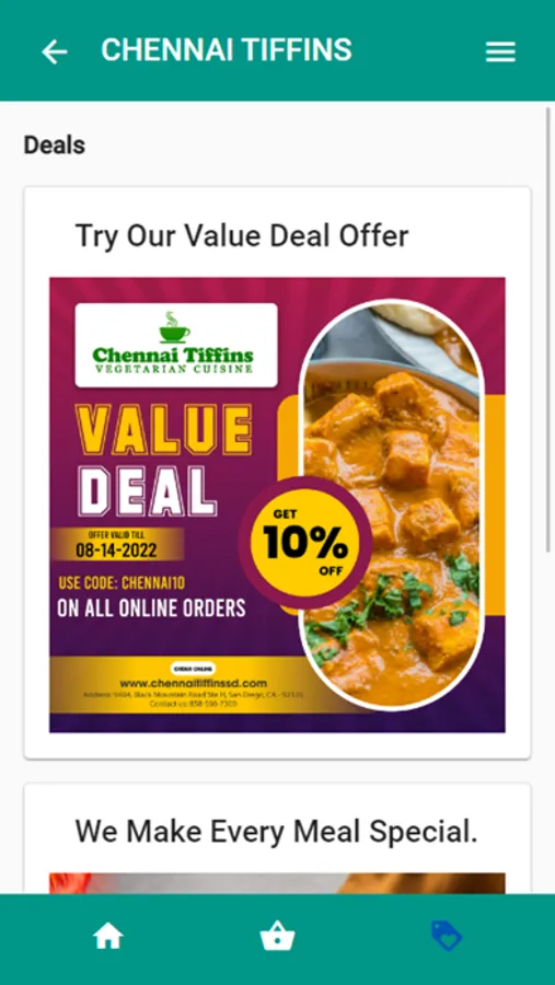 Chennai Tiffins San Diego is a mobile application intended for the very important patrons of the Chennai Tiffins @ San Diego, CA to support online ordering and customer loyalty.