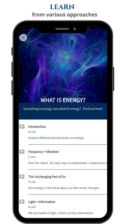 THE APP’S MISSION is to provide easy access for you to efficiently and effectively explore your energy. It will save you time, money, effort and overwhelm as you learn how to quickly enhance your life with energy.