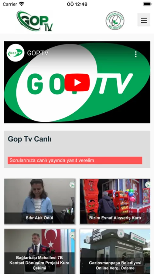 Gaziosmanpaşa Belediyesi'nin bir hizmeti olarak hazırlanan GopTv uygulaması ile ilçemizdeki canlı kameraları izleyebilecek ve hizmetlerimiz hakkında hazırlanan videoları takip edebileceksiniz.