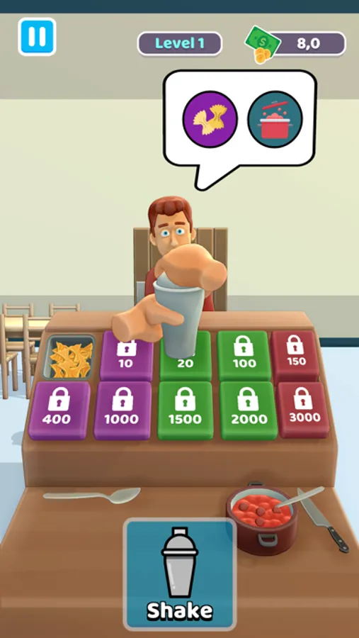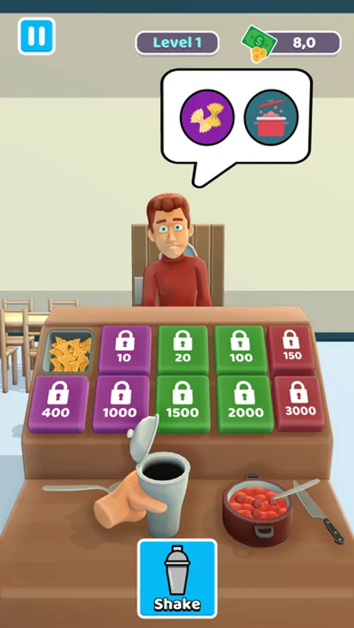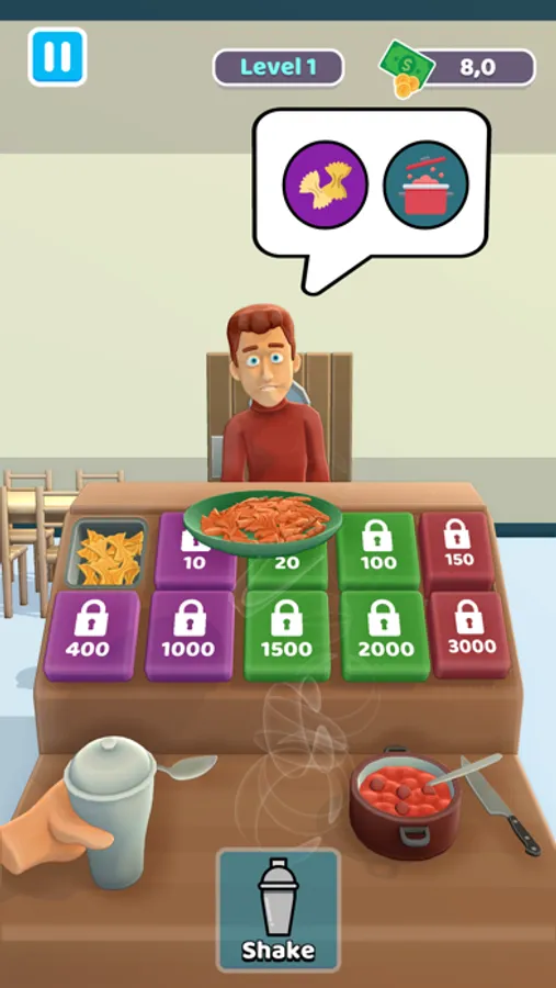Put the ingredients of the pasta that the customer wants in the shaker, prepare the pasta, deliver it to the customer and earn money!