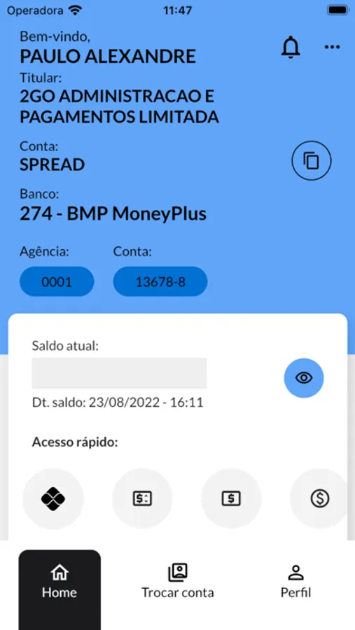 Controlando gastos, transações, transferências, pagamentos e emissão de boletos de forma intuitiva e integrada.