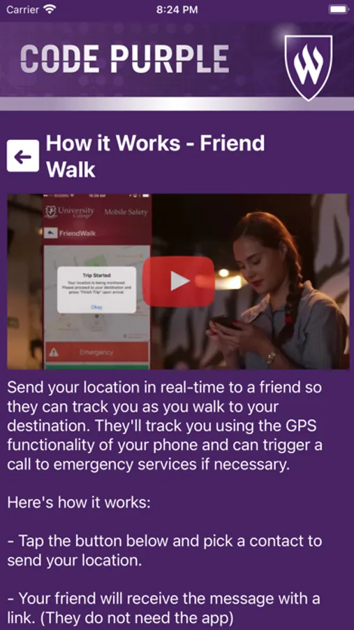 - Friend Walk: Send your location to a friend through email or SMS on your device. Once the friend accepts the Friend Walk request, the user picks their destination and their friend tracks their location in real time; they can keep an eye on them to make sure they make it safely to their destination.