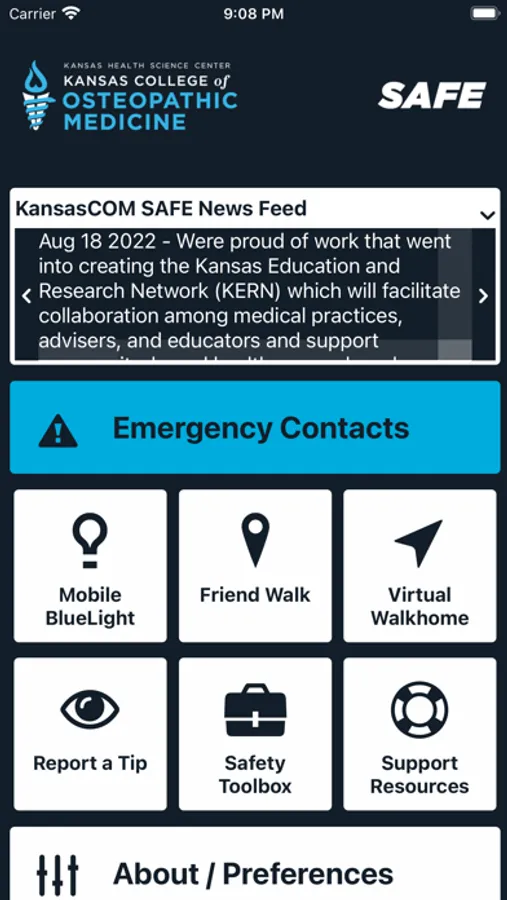 KansasCOM SAFE is the official safety app of Kansas College of Osteopathic Medicine. It is the only app that integrates with Kansas College of Osteopathic Medicine's safety and security systems. Campus Security has worked to develop a unique app that provides students, faculty and staff with added safety on the Kansas College of Osteopathic Medicine campus. The app will send you important safety alerts and provide instant access to campus safety resources.