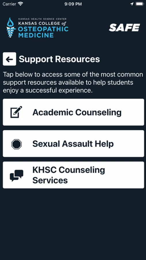- Support Resources: Access support resources in one convenient app to enjoy a successful experience at Kansas College of Osteopathic Medicine.