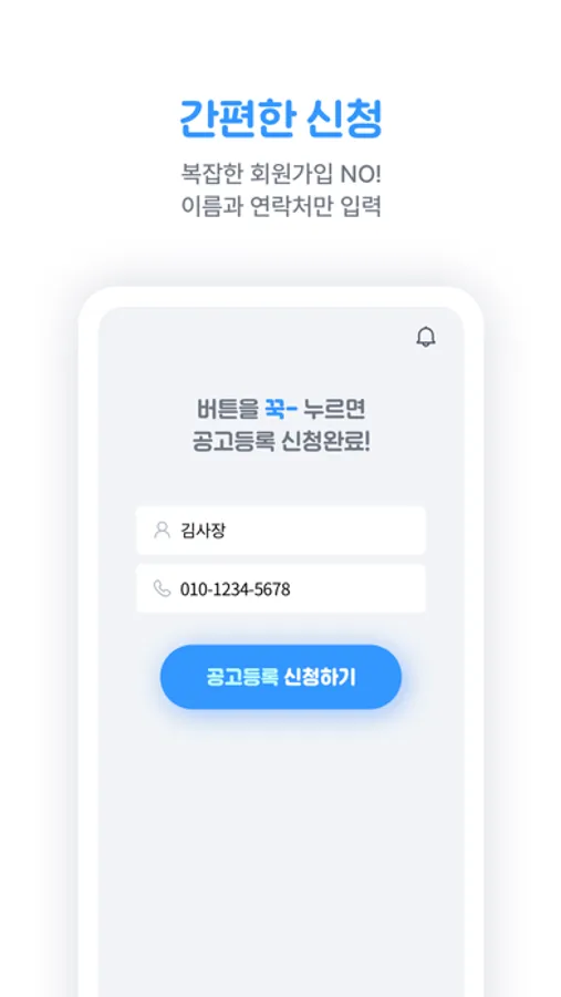 3. '이름, 전화번호' 만 입력하면 공고등록 필수절차 [사이트 회원가입-사업자증빙-구인공고 세부 사항]를 등록대행 담당자가 유선연락하여 지원