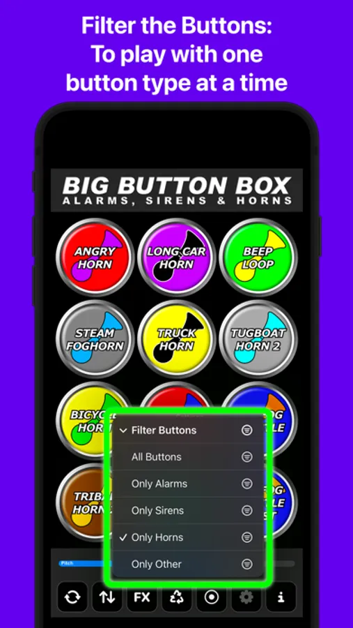 Big Button Box: Alarms, Sirens & Horns is the most advanced annoying noise maker available for your phone!