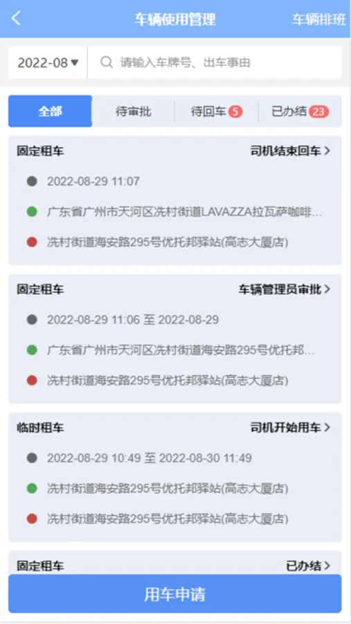 目前主要用于通信工程和维护现场施工过程进行管理,包括车辆,人,物资等的管理,开放外部人员注册使用,包括申请使用车辆,借用卡匙等