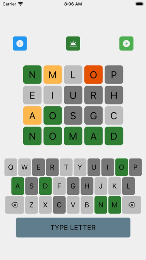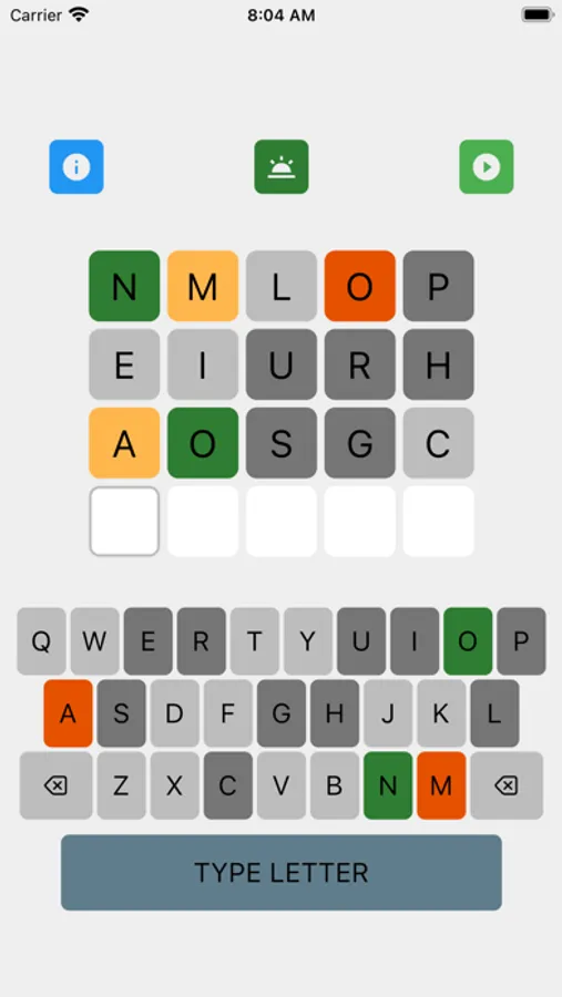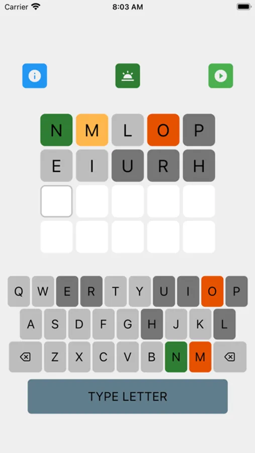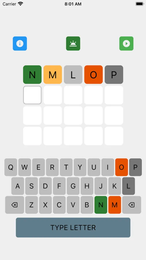 Light grey: Letter not in the word. The letter in this position in the word is alphabetically higher than the guessed letter.