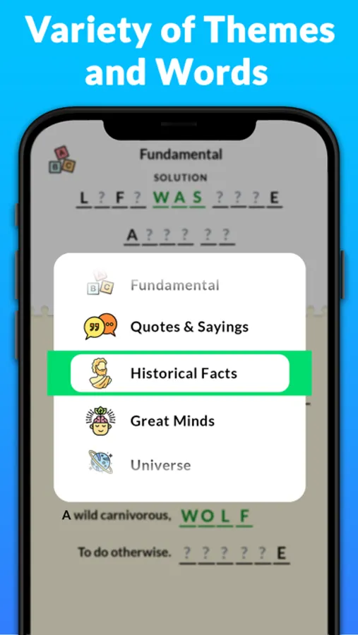 - Varieties of themes with different difficulty levels of logic word puzzles