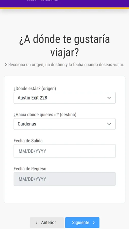 - Encuentra tu origen y destino, selecciona una fecha y busca entre las opciones de viajes que tenemos para ti.
