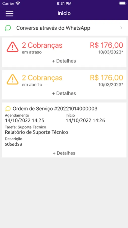 * Abra um suporte técnico e interaja com nossa equipe