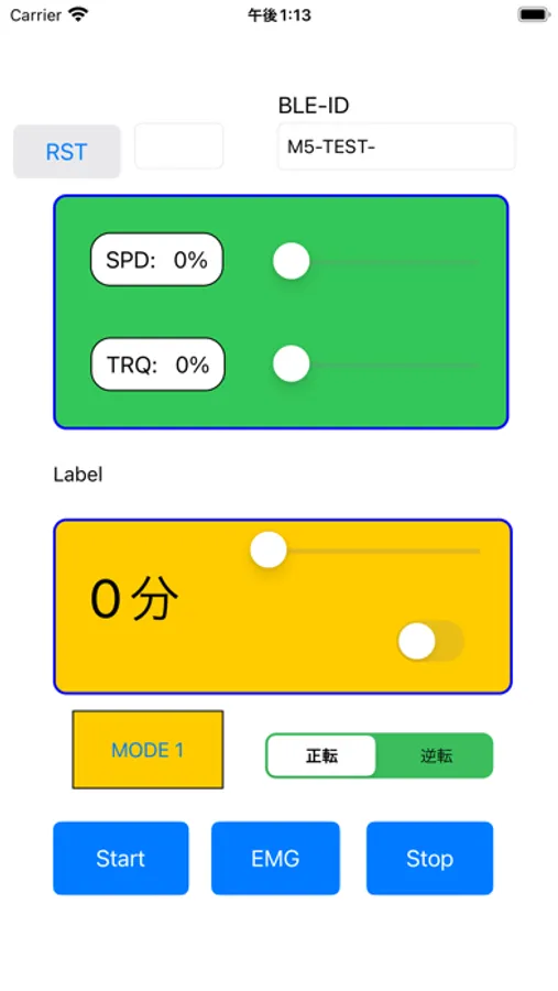本アプリは専用のM5Stackとの間でBLE通信を行い、M5Stack側の制御設定の変更やセンサー等の状態をモニターする専用アプリになります。