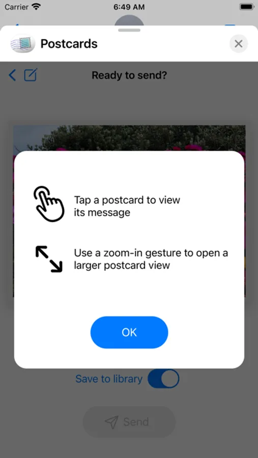 • Use a two-finger zoom-in gesture to open a larger view & save your card
