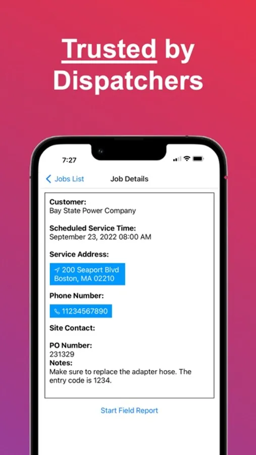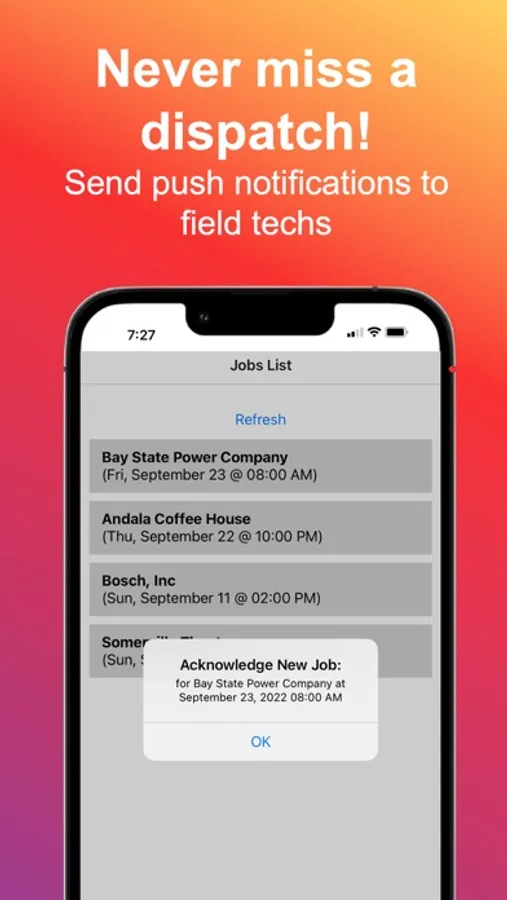 Never miss a dispatch! Field techs are notified via push notification of new work.