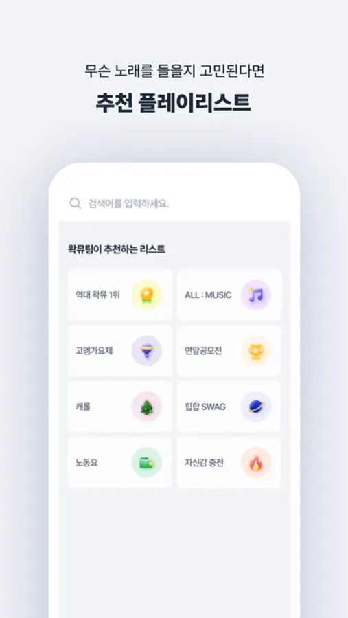 [검색 기능]을 통해 지금 여러분이 원하는 그 노래를 바로 찾아드립니다.