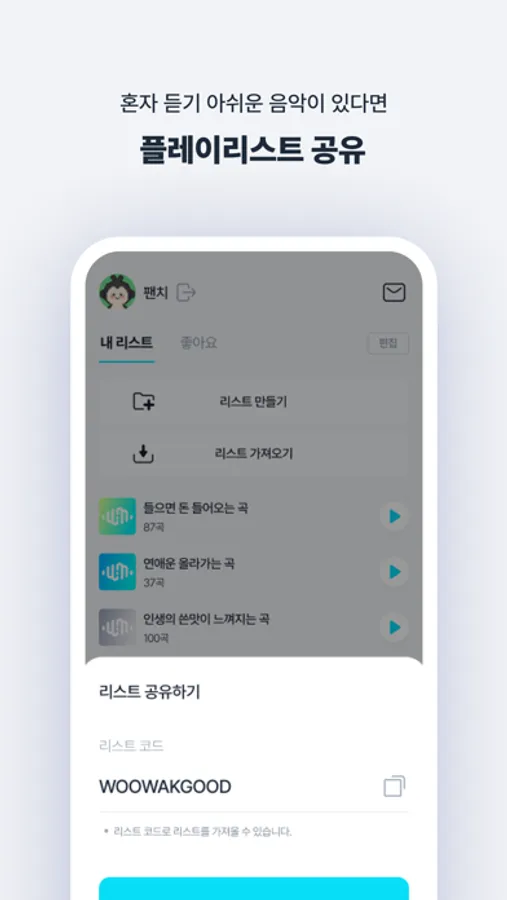 내 취향인 곡들만 골라 즐길 수 있는 [나만의 플레이리스트]!
