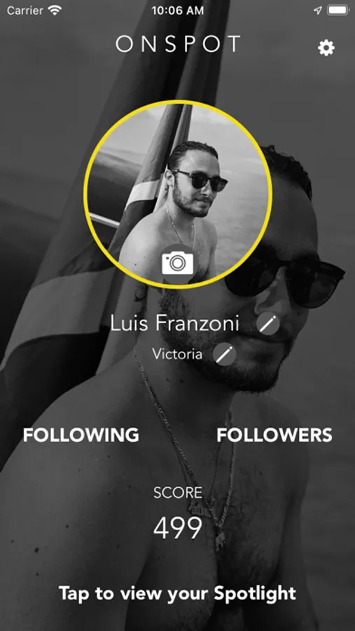 Simply move right from the main feed and you will be able to access you profile. Here, you will be able to see the users that you follow, the users that follow you, your score, and your Spotlight.
