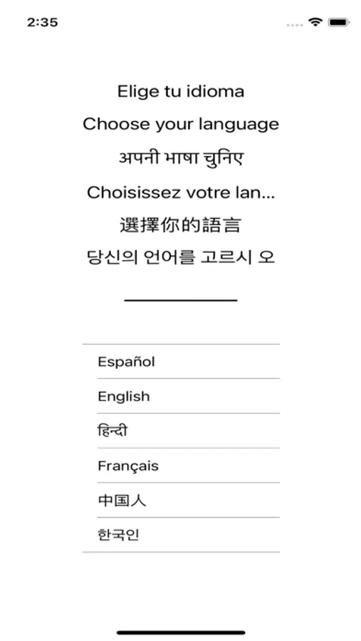 The languages of this version are Korean, Chinese, Hindi, French, English and Spanish.
