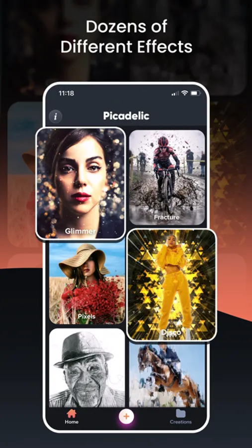 Picadelic brings a new level of creativity to photos with stunning animated effects. Quickly and easily transform photos into unforgettable digital artwork with a huge assortment of aesthetic filters. From dazzling light shows and elegant ink sketches to dramatic disintegrations and mind-bending glitches, choose from dozens of brilliant visual photo editor effects that bring photos to life and impress friends and followers.