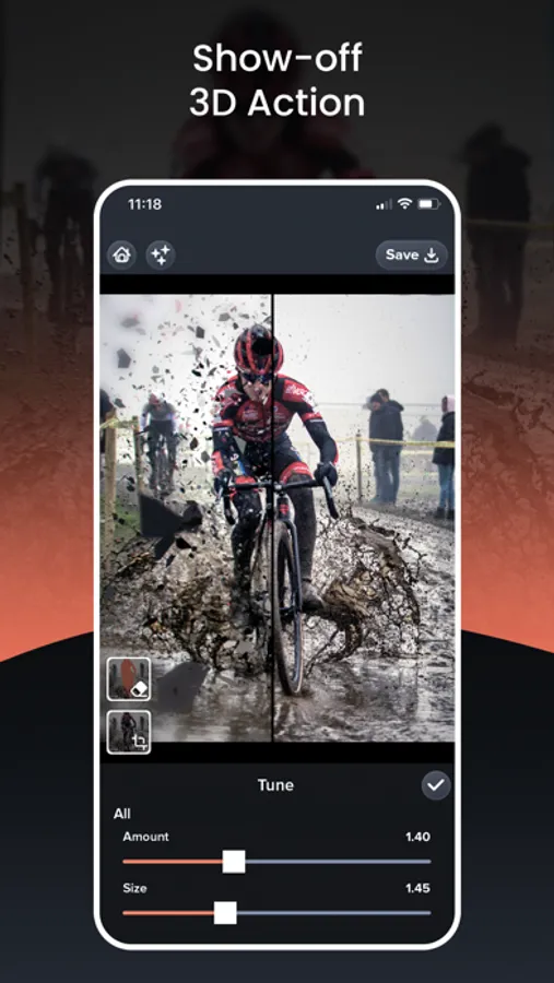 Tuning options: For even more artistic control, modify your animated photos with precise edits to adjust the amount, size, and motion of your effect graphics.
