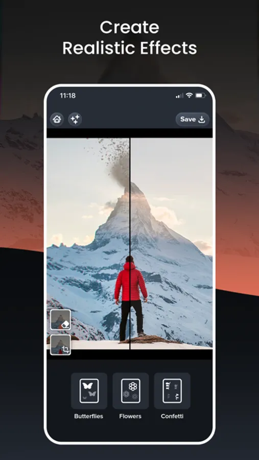 Mask options: Picadelic photo editing technology uses AI to automatically select the most likely part of your photo for the effect. However, you can always change this by selecting your own part of photo to mask. Easily remove backgrounds of images or animate them in fun and unique ways.